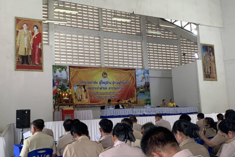 "ดร.เอกภาพ" โฆษก ก.กษฯพบปะกำนันผู้ใหญ่บ้านอำเภอโพนทองเพื่อรับฟังข้อเสนอแนะนำไปหาทางช่วยเหลือ