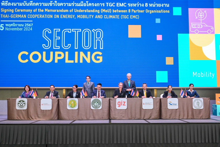 วันที่ 5 พ.ย.2567 หน่วยงานดำเนินโครงการ 8 หน่วยงานร่วมลงนามบันทึกข้อตกลงความร่วมมือ (MOU) ภายใต้โครงการความร่วมมือไทย-เยอรมัน ด้านพลังงาน คมนาคม และการเปลี่ยนแปลงสภาพภูมิอากาศ (TGC EMC) เพื่อร่วมกันสนับสนุนให้ประเทศไทยบรรลุเป้าหมายด้านสภาพภูมิอากาศ ความร่วมมือนี้มุ่งที่จะผนึกกำลังทุกหน่วยงานเพื่อให้ประเทศไทยบรรลุความเป็นกลางทางคาร์บอนใน พ.ศ. 2593 (ค.ศ. 2050) และบรรลุการปล่อยก๊าซเรือนกระจกเป็นศูนย์ใน พ.ศ. 2608 (ค.ศ. 2065)