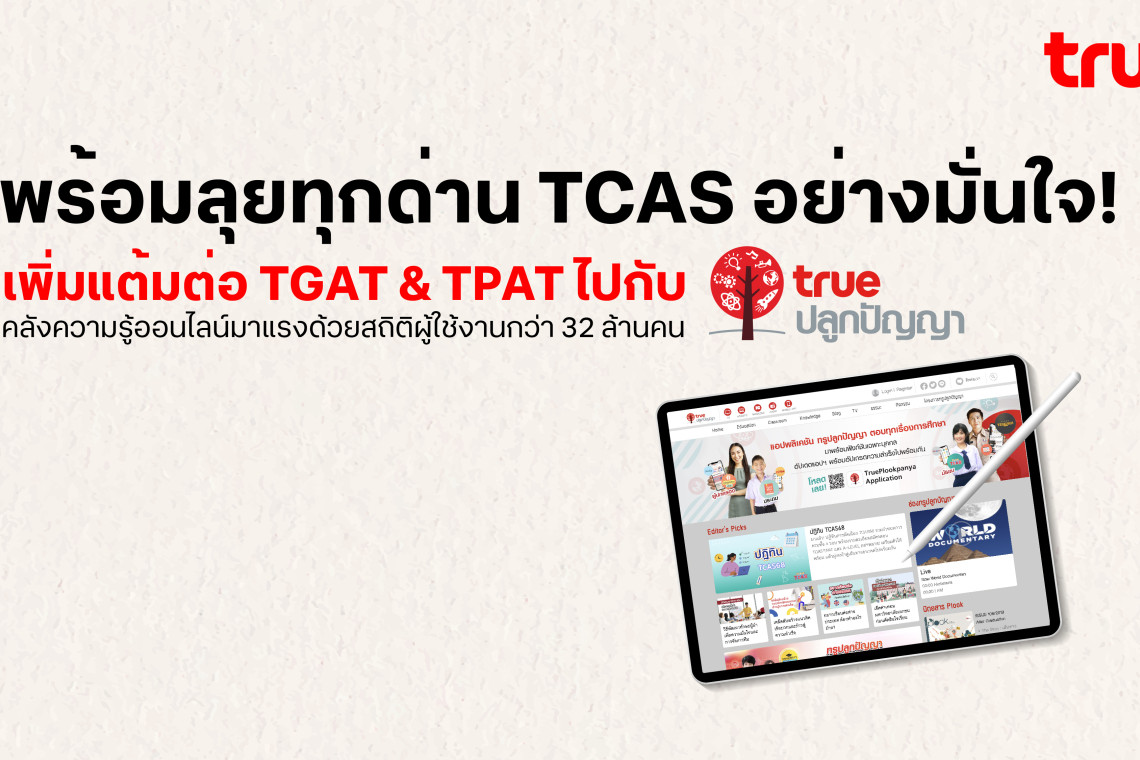 และเพื่อเป็นอีกหนึ่งเครื่องมือ ให้น้องๆ ได้เข้าถึงแหล่งรวมวิชา พร้อมฝึกฝนทำข้อสอบที่วัดความรู้นอกห้องเรียน ทั้ง TGAT & TPAT ให้มั่นใจในการแข่งขันครั้งนี้มากยิ่งขึ้น ซึ่งจะเป็นอีกหนึ่งตัวกำหนดสำคัญในเส้นทางการศึกษาและพิจารณาผลการสมัครเข้าสอบมหาวิทยาลัยใน TCAS68 ซีซั่นใหม่ที่กำลังจะเริ่มเดือนพฤศจิกายนนี้ ทรูปลูกปัญญา คลังความรู้ออนไลน์ที่มีสถิติผู้ใช้งานสูงสุดถึง 32 ล้านคน และมีผู้ใช้งานถึง 2.6 ล้านเพจวิวต่อเดือน จึงได้จัดความพิเศษช่วยให้น้องๆ เตรียมพร้อมมากที่สุดสำหรับภารกิจพิชิตแต้มต่อ TGAT & TPAT ครบทุกวิชาด้วยคอร์สเรียนฟรีจากทรูปลูกปัญญา รวมกว่าร้อยชั่วโมง โหลดจบครบที่เดียวในแอปพลิเคชัน Trueplookpanya ไม่ว่าจะเป็น
