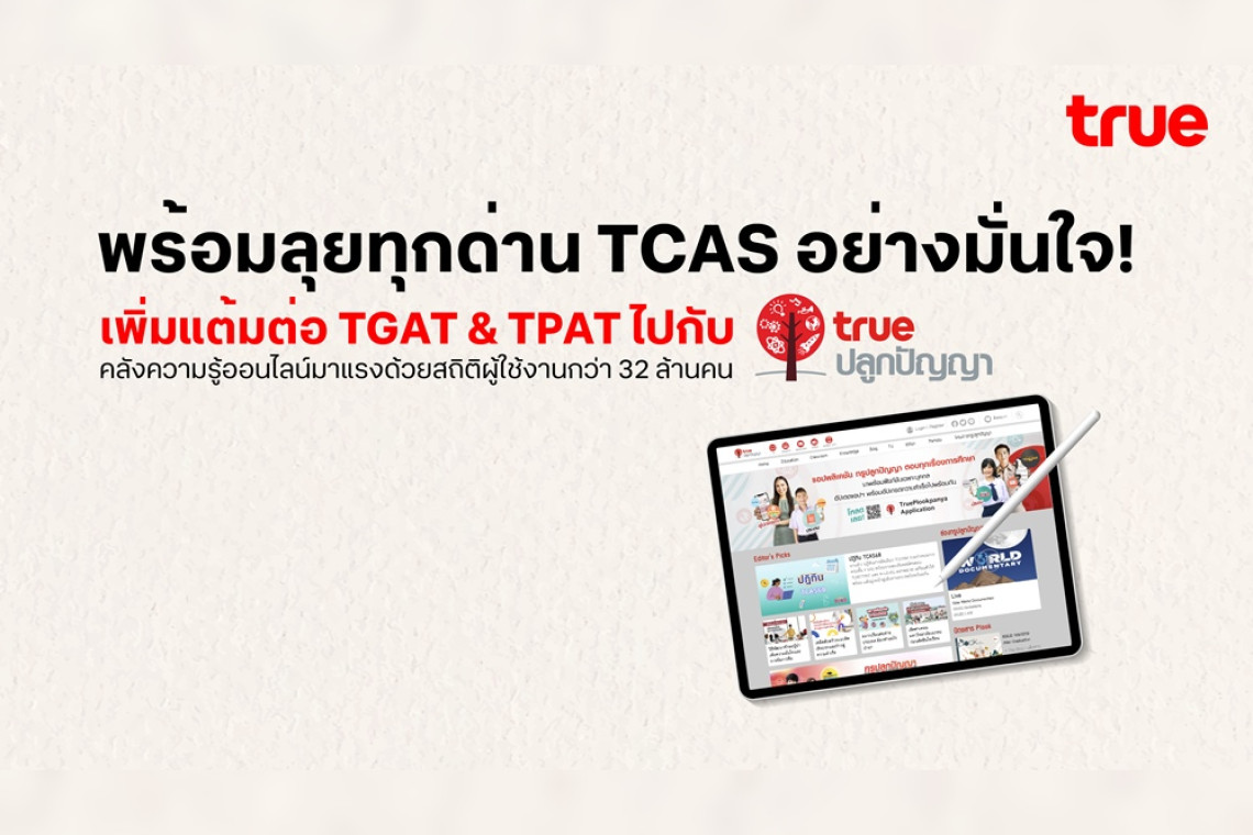และเพื่อเป็นอีกหนึ่งเครื่องมือ ให้น้องๆ ได้เข้าถึงแหล่งรวมวิชา พร้อมฝึกฝนทำข้อสอบที่วัดความรู้นอกห้องเรียน ทั้ง TGAT & TPAT ให้มั่นใจในการแข่งขันครั้งนี้มากยิ่งขึ้น ซึ่งจะเป็นอีกหนึ่งตัวกำหนดสำคัญในเส้นทางการศึกษาและพิจารณาผลการสมัครเข้าสอบมหาวิทยาลัยใน TCAS68 ซีซั่นใหม่ที่กำลังจะเริ่มเดือนพฤศจิกายนนี้ ทรูปลูกปัญญา คลังความรู้ออนไลน์ที่มีสถิติผู้ใช้งานสูงสุดถึง 32 ล้านคน และมีผู้ใช้งานถึง 2.6 ล้านเพจวิวต่อเดือน จึงได้จัดความพิเศษช่วยให้น้องๆ เตรียมพร้อมมากที่สุดสำหรับภารกิจพิชิตแต้มต่อ TGAT & TPAT ครบทุกวิชาด้วยคอร์สเรียนฟรีจากทรูปลูกปัญญา รวมกว่าร้อยชั่วโมง โหลดจบครบที่เดียวในแอปพลิเคชัน Trueplookpanya ไม่ว่าจะเป็น