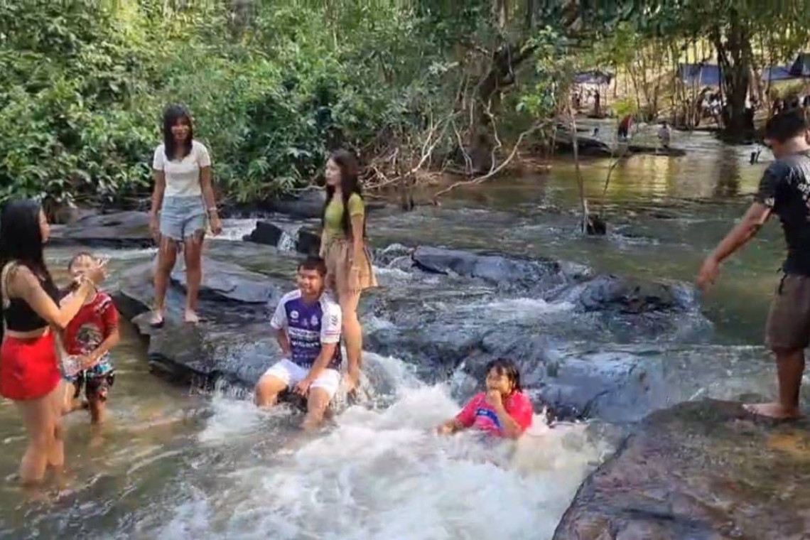 นักท่องเที่ยวแห่เที่ยว “น้ำตกโอวปังโกว์” ที่ศรีสะเกษ จากเทือกเขาพนมดงรัก ทอดยาวกว่า 20 กิโลเมตร