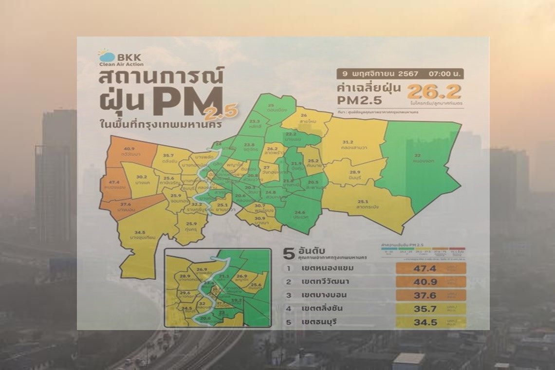 รายงานข้อมูลโดย: ทีมโฆษกศูนย์ข้อมูลคุณภาพอากาศกรุงเทพมหานคร