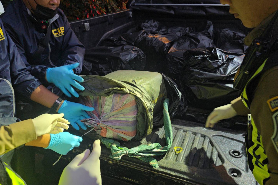 พ.ต.ท.พิชญา ทวิชศรี สว.ส.ทล.1 กก.5 บก.ทล. จึงได้สั่งการให้ตำรวจทางหลวงตาก ตั้งจุดตรวจจุดสกัด และใช้รถวิทยุตรวจการณ์ออกตรวจตามเส้นทางที่คาดว่าใช้ในการลักลอบขนยาเสพติดอย่างต่อเนื่องเช่นกัน กระทั่งวันนี้ 9 พ.ย.67 เจ้าหน้าที่ตำรวจ ส.ทล.1 กก.5 บก.ทล. ได้รับแจ้งว่าจะมีรถที่คาดว่าใช้ในการขนส่งและลำเลียงยาเสพติด ลักลอบลำเลียงยาเสพติดจากภาคเหนือตอนบนเข้าไปยังพื้นที่ภาคกลาง เจ้าหน้าที่ตำรวจจึงได้วางแผนสกัดจับขบวนการลักลอบขนยาเสพติดดังกล่าว โดยเวลาประมาณ 05.00 น. เจ้าหน้าที่ตำรวจพบรถยนต์กระบะต้องสงสัย ลักษณะตรงตามที่ได้รับแจ้ง ขับมาบนถนนพหลโยธิน (ทล.1) กม.568 ต.วังหมัน อ.สามเงา จ.ตาก ลักษณะบรรทุกของหนัก เจ้าหน้าที่จึงใช้รถวิทยุตรวจการณ์ ขับติดตามพร้อมเปิดสัญญาณไฟวับวาบ เปิดกระบองไฟและส่งสัญญาณมือให้หยุดรถเพื่อขอตรวจสอบ แต่รถคันดังกล่าวได้เร่งความเร็วขับหลบหนี เจ้าหน้าที่จึงได้ขับติดตามไปอย่างกระชั้นชิด จนมาถึง กม.542 +200 ถนนพหลโยธิน (ขาล่อง) ต.ตากออก อ.บ้านตาก จ.ตาก รถคันดังกล่าวได้จอดไหล่ทางด้านซ้าย โดยคนขับและคนโดยสารนั่งมาด้านซ้ายหน้าข้างคนขับ เปิดประตูรถและกระโดดลงจากรถวิ่งหลบหนีเข้าป่าข้างทางไปอย่างรวดเร็ว เจ้าหน้าที่จึงได้วิ่งไล่ติดตามไป แต่ไม่สามารถติดตามได้ทัน เนื่องจากพื้นที่ดังกล่าวเป็นป่าและไม่มีแสงสว่าง คนขับและคนโดยสารนั่งมาด้านซ้ายหน้าข้างคนขับจึงอาศัยความมืดหลบหนีไปได้ เจ้าหน้าที่ตำรวจทางหลวงตากจึงได้ประสาน สภ.บ้านตาก ท้องที่ที่เกิดเหตุช่วยติดตามจับกุมคนร้ายต่อไป