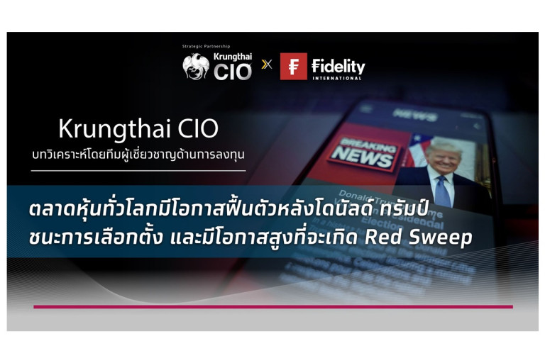 Krungthai CIO มองตลาดหุ้นทั่วโลกพุ่งแรงรับทรัมป์ คว้าชัยประธานาธิบดีสหรัฐฯ พร้อมครองเสียงข้างมากในสภาคองเกรสทั้งวุฒิสภาและสภาผู้แทนราษฎร ชี้โอกาสเกิด “ทรัมป์เทรด” ในหุ้นที่ได้รับอานิสงส์จากนโยบายทรัมป์ ทั้งการเงิน พลังงาน และหุ้นขนาดเล็กสหรัฐฯ โดยระยะสั้นหุ้นมีโอกาสปรับตัวตาม Sentiment หรือนโยบายที่ได้หาเสียงไว้ก่อนหน้า