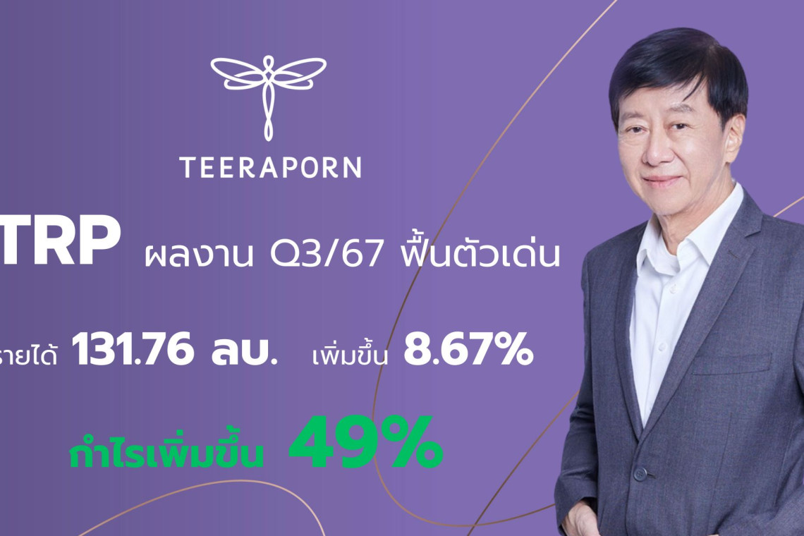TRP ส่งสัญญาณฟื้นตัวไตรมาส 3/2567 กวาดกำไรสุทธิ 38.03 ล้านบาท พุ่งแตะ 49% รับอานิสงส์ ลูกค้าเข้าใช้บริการเพิ่มขึ้น แย้มทิศทางผลงานไตรมาส 4/2567 โตต่อเนื่อง พร้อมชู 3 กลยุทธ์หลัก เดินเกมรุกต่อยอดความสำเร็จ หนุนผลงานโตแกร่ง