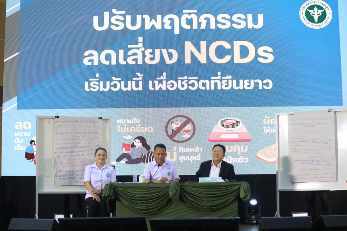วันที่ 14 พ.ย. 2567 ที่มหาวิทยาลัยเจ้าพระยา จังหวัดนครสวรรค์ นายสมศักดิ์ เทพสุทิน รัฐมนตรีว่าการกระทรวงสาธารณสุข เป็นประธานเปิดงานการขับเคลื่อนนโยบายคนไทยห่างไกลโรคไม่ติดต่อเรื้อรัง (NCDs) ครั้งที่ 3โดยมี นายกิตติกร โล่ห์สุนทร เลขานุการรัฐมนตรีว่าการกระทรวงสาธารณสุข นางสาวชุติพร เสสัง รองผู้ว่าราชการจังหวัดนครสวรรค์ นายแพทย์วีรวุฒิ อิ่มสำราญ รองปลัดกระทรวงสาธารณสุข นายแพทย์มณเฑียร คณาสวัสดิ์ รองปลัดกระทรวงสาธารณสุข นายแพทย์ภาณุมาศ ญาณเวทย์สกุล อธิบดีกรมควบคุมโรค นายแพทย์ภานุวัฒน์ ปานเกตุ อธิบดีกรมสนับสนุนบริการสุขภาพ นายทรงศักดิ์ ส่งเสริมอุดมชัย สส.นครสวรรค์ พรรคเพื่อไทย และ อสม.กว่า 2,000 คน เข้าร่วม
