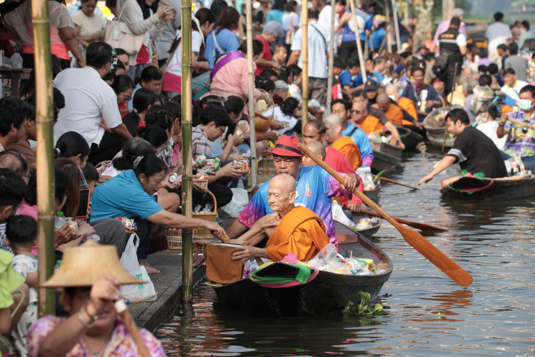 บริเวณคลองมหาสวัสดิ์ หน้าวัดสุวรรณาราม อำเภอพุทธมณฑล จังหวัดนครปฐม พุทธศาสนิกชนร่วมสืบสานประเพณีตักบาตรท้องน้ำ เนื่องในวันลอยกระทง ประจำปี 2567 เพื่ออนุรักษ์ประเพณีที่มีมานานกว่าครึ่งศตวรรษ และเป็นการอนุรักษ์เรือและวิถีชีวิตริมคลองมาสวัสดิ์ ประเพณีตักบาตรท้องน้ำเนื่องในวันลอยกระทง เป็นประเพณีที่มีมาตั้งแต่มากกว่า 60 ปีมาแล้ว