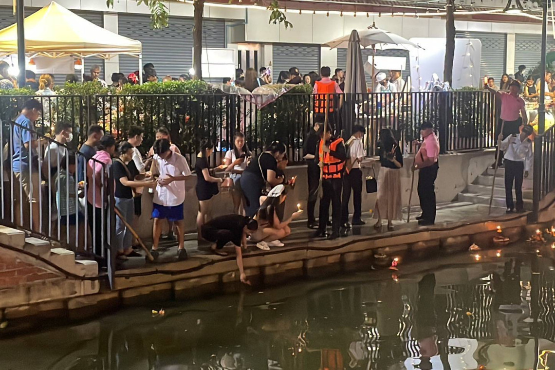 วันนี้ 15 พ.ย.67 เวลา 20:00 น. ผู้สื่อข่าวได้รายงาน ว่า ที่คลองโอ่งอ่าง เขตพระนคร กทม. บรรยากาศเต็มไปด้วยปชช.แห่กันมาลอยกระทง ในคลองโอ่งอ่าง โดยในงานมีจนท.ตำรวจท่องเที่ยว และเทศกิจคอยดูความเรียบร้อยในพื้นที่ ตลอดงาน ทั้งนี้ผู้สื่อข่าวได้สังเกตว่าจุดที่ลอยกระทง มีอยู่ 2 ฝั่งเป็นโป๊ะเรือสำหรับให้ปชช.ไว้สำหรับลอยกระทง ภายในงานมีสินค้ามากมายให้เลือกซื้อ โดยเฉพาะของกิน ทั้งนี้งานจะจัดไปจนถึงเวลา 23:00 น.