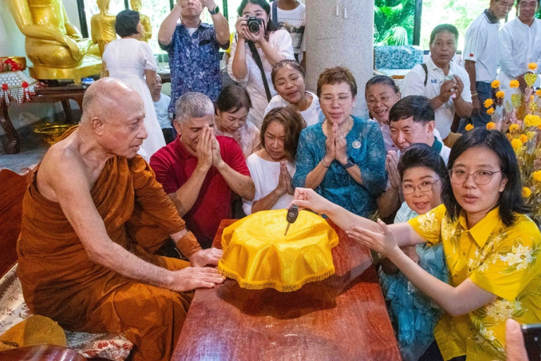 หลังจากพิธีทอดผ้ากฐิน ทางพระอาจารย์เชือน ปภัสโรและ พระอาจารย์เขียว ได้ส่งมอบรถพยาบาลฉุกเฉินให้กับโรงพยาบาลป่าตอง จ.ภูเก็ตและอุปกรณ์ทางการแพทย์ให้กับนายนนท์ จินดาเวช นายแพทย์สาธารณสุขจังหวัดพังงา นพ.วีระศักดิ์ หล่อทองคำ ผอ.โรงพยาบาลวชิระภูเก็ต โดยได้มอบรถพยาบาลฉุกเฉินพร้อมอุปกรณ์ให้โรงพยาบาลวชิระภูเก็ต 1 คัน มูลค่า 2,300,000 บาท มอบเตียงไฟฟ้า3ไกร์พร้อมตู้ข้างเตียงและโต๊ะคล่อมเตียง ให้โรงพยาบาลวชิระภูเก็ต จำนวน 68 ชุด มูลค่า 2,380,000 บาท มอบเตียงไฟฟ้า3ไกร์พร้อมตู้ข้างเตียงและโต๊ะคล่อมเตียง ให้โรงพยาบาลทับปุด1ชุด มูลค่า35,000 บาท มอบเครื่องวัดความดันโลหิตแบบสอดแขน AND จำนวน1เครื่อง มูลค่า 60,000 บาท ให้โรงพยาบาลกะปงชัยพัฒน์ มอบเครื่องวัดความดันโลหิตแบบสอดแขน AND จำนวน1เครื่อง มูลค่า 60,000 บาท ให้โรงพยาบาลท้ายเหมืองชัยพัฒน์ มอบกันสาดให้โรงพยาบาลกะปงชัยพัฒน์ มูลค่า 50,000บาท และมอบโต๊ะหน้าขาวจำนวน7ตัวให้กับโรงเรียนเกียรติประชา เกาะพระทอง รวมทั้งหมดมูลค่า 5,205,000 บาท