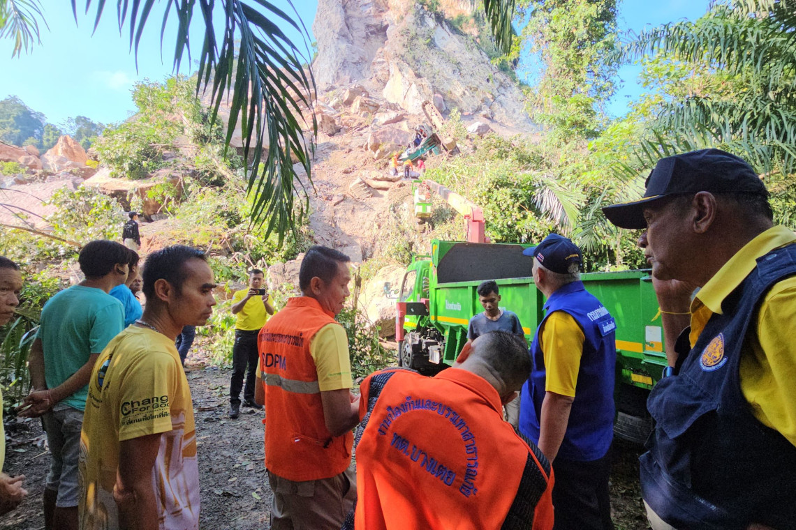 เมื่อวันที่ 18 พฤศจิกายน 2567 ผู้สื่อข่าวรายงานว่า นายไพรัตน์ เพชรยวน รองผู้ว่าราชการจังหวัดพังงา พร้อมด้วยนายพีรพัฒน์ เงินเจริญ นายอำเภอเมืองพังงา นายสงบ สะโตน หัวหน้าสำนักงานป้องกันและบรรเทาสาธารณภัยจังหวัดพังงา ผู้นำท้องที่ตำบลบางเตย นำกำลังเจ้าหน้าที่เข้าตรวจสอบเหตุการณ์ที่หินถล่มลงมาทับรถแบคโฮ อยู่ในพื้นที่ ซอยบ่อขยะเทศบาลตำบลบางเตย ม.3 ต.บางเตย อ.เมืองพังงา จ.พังงา เมื่อช่วงเย็นวานนี้(17 พ.ย.) ซึ่งหลังจากได้รับแจ้งแล้วเจ้าหน้าที่ได้เข้าตรวจสอบให้ความช่วยเหลือ แต่ไม่สามารถค้นหาตัวคนขับได้เนื่องจากรถแบคโฮอยู่ที่สูงและชันและหินยังมีความเคลื่อนไหวอยู่และมีฝนตกช่วงค่ำ ซึ่งเป็นอันตรายต่อทีมช่วยเหลือ จึงถอนกำลังและค้นหาต่อในเช้าวันนี้ และได้พบศพนายนวพล (สงวนนามสกุล)อายุ 48 ปี ชาวต.ท้ายช้าง อ.เมืองพังงา จ.พังงา ถูกรถแบคโฮทับตายคาที่อยู่ใต้รถ จึงทำการเคลื่อนย้ายศพไปยังโรงพยาบาลพังงา และทางเจ้าหน้าที่ได้ปิดกั้นพื้นที่เป็นเขตอันตรายห้ามเข้า