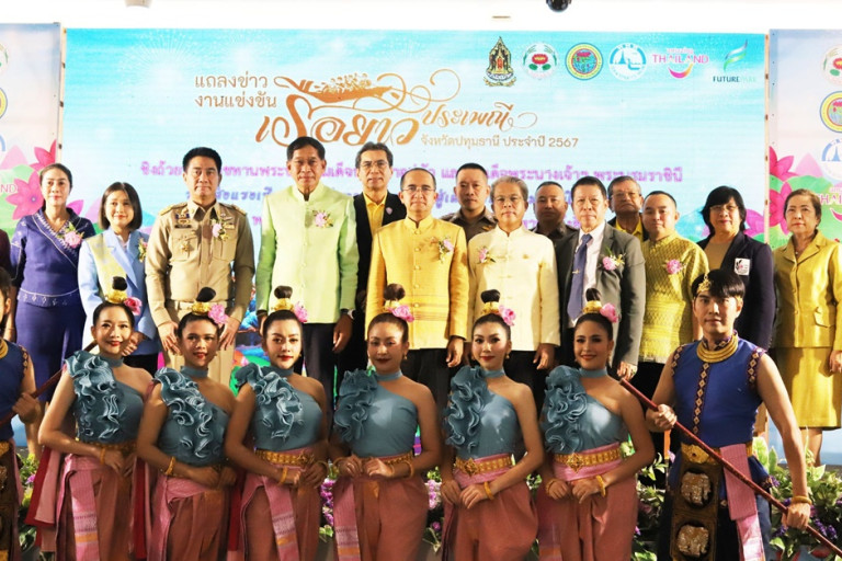 วันที่ 20 พ.ย.67 บริเวณลาน Zpotlight ชั้น G ศูนย์การค้าฟิวเจอร์พาร์ค รังสิต นายสมคิด จันทมฤก ผู้ว่าราชการจังหวัดปทุมธานี พร้อมด้วยพลตำรวจโท คำรณวิทย์ ธูปกระจ่าง นายกองค์การบริหารส่วนจังหวัดปทุมธานี และ นายชาญยุทธ เศวตสุวรรณ ผู้อำนวยการสำนักงานการท่องเที่ยวแห่งประเทศไทย (ททท.) สำนักงานกรุงเทพมหานคร ร่วมกันแถลงข่าว “โครงการจัดงานแข่งขันเรือยาวประเพณี จังหวัดปทุมธานี ประจำปี 2567” ชิงถ้วยพระราชทานพระบาทสมเด็จพระเจ้าอยู่หัว และสมเด็จพระนางเจ้าฯ พระบรมราชินี ระหว่างวันที่ 3 - 5 ธันวาคม 2567 ณ แม่น้ำเจ้าพระยา บริเวณสวนเทพปทุม ตำบลบางปรอก อำเภอเมืองปทุมธานี จังหวัดปทุมธานี โดยมีนายดงพล รุจิธรรมธัช ปลัดจังหวัดปทุมธานี นายอมรเทพ เพชรกำแพงแสน ที่ปรึกษาด้านการตลาด ศูนย์การค้าฟิวเจอร์พาร์คนายอำเภอทั้ง 7 อำเภอ หัวหน้าส่วนราชการ ประชาชน เข้าร่วมงานฯ