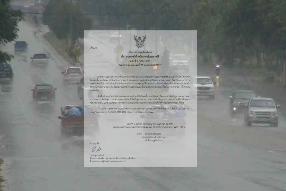 วันที่ 21 พ.ย.67 กรมอุตุนิยมวิทยา ประกาศฉบับที่ 2 เรื่องฝนตกหนักถึงหนักมากบริเวณภาคใต้ (มีผลกระทบจนถึงวันที่ 23 พฤศจิกายน 2567) ความว่า...