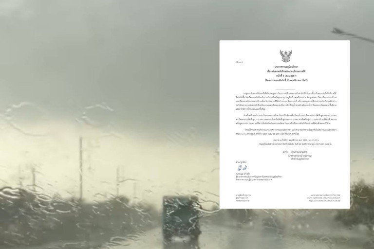 เมื่อวันที่ 21 พ.ย.2567 เมื่อเวลา 17.00 น. กรมอุตุนิยมวิทยา ประกาศเรื่อง ฝนตกหนักถึงหนักมากบริเวณภาคใต้ ฉบับที่ 3 (มีผลกระทบจนถึงวันที่ 23 พฤศจิกายน 2567) ระบุว่า มรสุมตะวันออกเฉียงเหนือที่พัดปกคลุมอ่าวไทย ภาคใต้ และทะเลอันดามันมีกำลังแรงขึ้น ลักษณะเช่นนี้ทำให้ภาคใต้มีฝนเพิ่มขึ้น โดยมีฝนตกหนักถึงหนักมากบริเวณจังหวัดชุมพร สุราษฎร์ธานี นครศรีธรรมราช พัทลุง สงขลา ปัตตานี ยะลา นราธิวาส และมีฝนตกหนักบางแห่งบริเวณจังหวัดประจวบคีรีขันธ์ ระนอง พังงา กระบี่ ตรัง และสตูล ขอให้ประชาชนในบริเวณดังกล่าวระวังอันตรายจากฝนตกหนักถึงหนักมากและฝนที่ตกสะสม ซึ่งอาจทำให้เกิดน้ำท่วมฉับพลันและน้ำป่าไหลหลาก โดยเฉพาะพื้นที่ลาดเชิงเขาใกล้ทางน้ำไหลผ่านและพื้นที่ลุ่ม