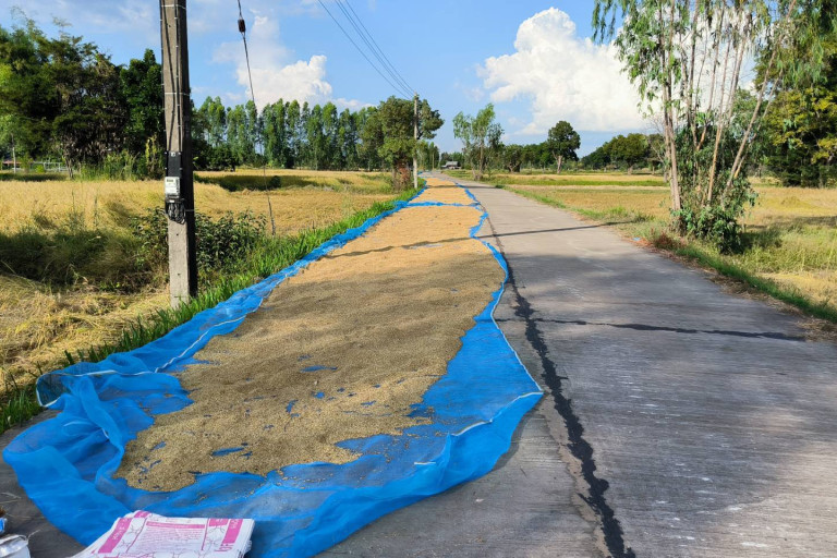 ดังนั้นในขณะนี้ตามถนนเชื่อมหมู่บ้านและตำบลตลอดจนภายในหมู่บ้านเองจะเต็มไปด้วยข้าวเปลือกแม้จะกีดขวางการจราจรแต่คนที่ขับรถผ่านต้องคอยระมัดระวังเพื่อป้องกันการเกิดอุบัติเหตุอีกทั้งการตากข้าวบนถนนกลายเป็นเรื่องปกติเมื่อถึงช่วงฤดูกาลเก็บเกี่ยวข้าวของทุกปี