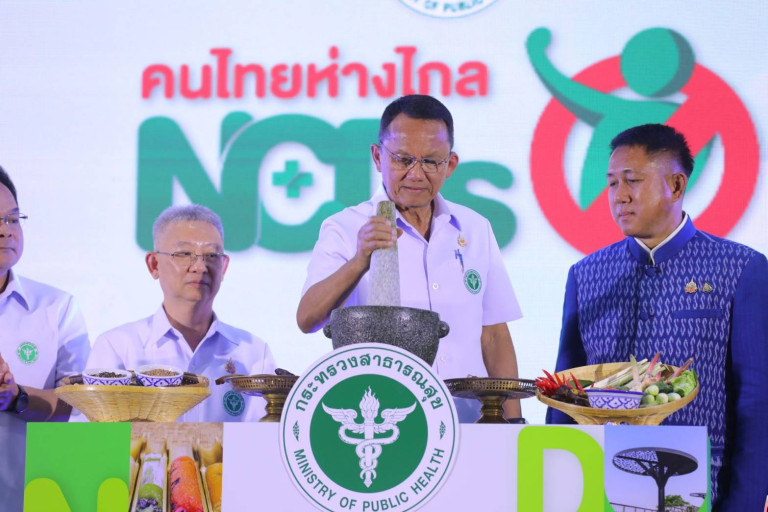 เมื่อวันที่ 22 พ.ย.2567 นายสมศักดิ์ เทพสุทิน รัฐมนตรีว่าการกระทรวงสาธารณสุข เป็นประธานพิธีเปิดงานการขับเคลื่อนนโยบายคนไทยห่างไกลโรคไม่ติดต่อเรื้อรัง (NCDs) ครั้งที่ 4 โดยมี นพ.โอภาส การย์กวินพงศ์ ปลัดกระทรวงสาธารณสุข นายธวัชชัย ศรีทอง ผู้ว่าราชการจังหวัดชลบุรี นายอนันต์ ปรีดาสุทธิจิตต์ สมาชิกสภาผู้แทนราษฎร เขต 5 จังหวัดชลบุรี พรรคเพื่อไทย นายกิตติกร โล่ห์สุนทร เลขานุการรัฐมนตรีว่าการกระทรวงสาธารณสุข นายกองตรี ธนกฤต จิตรอารีย์รัตน์ ผู้ช่วยรัฐมนตรีประจำกระทรวงสาธารณสุข นายสมศักดิ์ กาญจนวัฒนา ผู้ช่วยรัฐมนตรีประจำกระทรวงสาธารณสุข นพ.ภูวเดช สุระโคตร รองปลัดกระทรวงสาธารณสุข นพ.กิตติศักดิ์ อักษรวงศ์ อธิบดีกรมสุขภาพจิต พญ.อัมพร เบญจพลพิทักษ์ อธิบดีกรมอนามัย นพ.ภานุวัฒน์ ปานเกตุ อธิบดีกรมสนับสนุนบริการสุขภาพ นพ.สุรโชค ต่างวิวัฒน์ เลขาธิการคณะกรรมการอาหารและยา ผู้บริหารกระทรวงสาธารณสุข อสม. และผู้ร่วมงานรวม 1,200 คน รวมถึงมีผู้เข้าร่วมงานในระบบออนไลน์ 130,000 คน เข้าร่วม ที่ศาลาประชาคมอ่าวอุดม ตำบลทุ่งสุขลา อำเภอศรีราชา จังหวัดชลบุรี