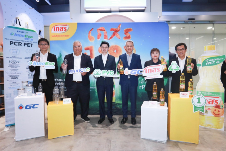 คุณสาโรจน์ พุทธธรรมวงศ์ ประธานเจ้าหน้าที่ปฏิบัติการกลุ่มธุรกิจผลิตภัณฑ์เคมีมูลค่าเพิ่ม บริษัท พีทีที โกลบอล เคมิคอล จำกัด (มหาชน) กล่าวว่า “GC ในฐานะผู้ผลิตเม็ดพลาสติกรีไซเคิล rPET คุณภาพสูง ภายใต้ แบรนด์ InnoEco by GC มุ่งมั่นพัฒนาและผลิตเม็ดพลาสติกรีไซเคิลคุณภาพสูงจากพลาสติกใช้แล้วในประเทศไทย 100% ด้วยเทคโนโลยีที่ทันสมัยของ บริษัท เอ็นวิคโค จำกัด (ENVICCO) บริษัทใน GC Group ได้รับการรับรองมาตรฐานการสัมผัสอาหาร (Food Contact) โดยได้รับการรับรองจากองค์การอาหารและยา (อย.) เป็นรายแรกในประเทศไทย ตลอดจนหน่วยงานระดับโลก ทั้งองค์การอาหารและยาของประเทศ สหรัฐอเมริกา (US.FDA.) และหน่วยงานตรวจสอบความปลอดภัยด้านอาหารแห่งสหภาพยุโรป (EFSA) จึงได้รับความไว้วางใจจากแบรนด์ชั้นนำทั้งในอุตสาหกรรมอาหารและเครื่องดื่ม โดยในครั้งนี้ บริษัท น้ำมันพืชปทุม ผู้ผลิตและจัดจำหน่ายน้ำมันพืช ตราเกสร ร่วมมือกับ GC ในการพัฒนาขวดน้ำมันพืชจากเม็ดพลาสติกรีไซเคิล ประสบความสำเร็จ ตอบโจทย์ทั้งด้านคุณสมบัติในการเก็บรักษารสชาติและกลิ่น ได้อย่างมีประสิทธิภาพและปลอดภัย เป็นรายแรกของไทย”