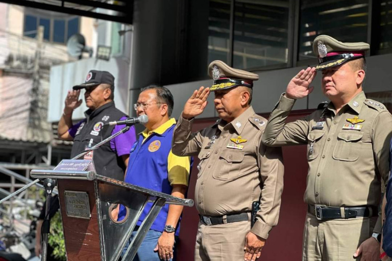ปล่อยแถวการป้องกันและระงับเหตุกลุ่มบุคคลต่างด้าวก่อเหตุทะเลาะวิวาท ประกอบด้วยเจ้าหน้าที่ตำรวจร่วมกับฝ่ายปกครอง กอ.รมน.