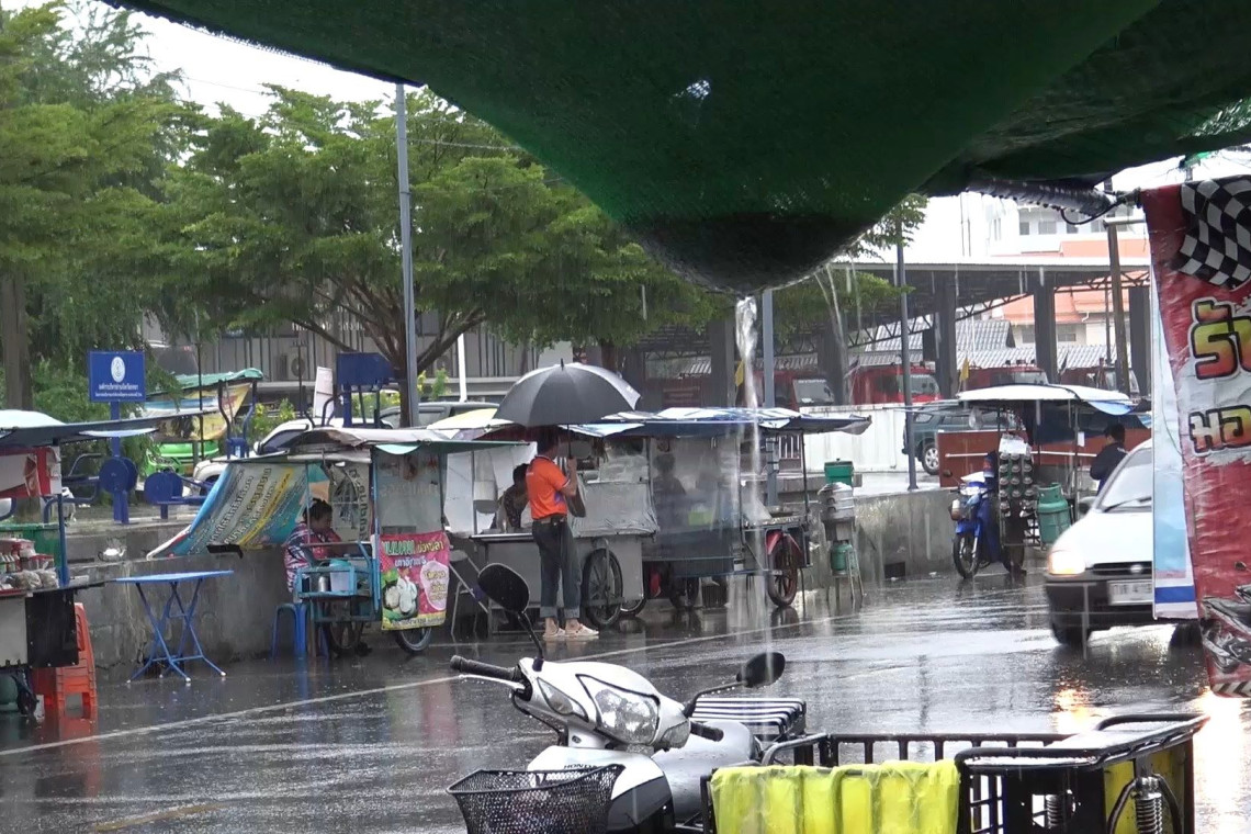 ในขณะเดียวกัน ช่วงนี้ฝนตกทุกวัน เนื่องจากภาคใต้เป็นฤดูมรสุมตะวันออกเฉียง เหนือ พ่อค้าแม่ค้าบริเวณตลาดชุมชนริมถนนเตาอิฐ เขตเทศบาลนครสงขลา ซึ่งเป็นตลาดกลางแจ้ง ปรกติถ้าฝนไม่ตกจะขายดีทุกวัน ทุกร้าน แต่ในช่วงนี้ฝนตกทุกวัน ต่างได้รับผลกระทบไปตามๆกัน เนื่องจากลูกค้าหาย รายได้หด อีกทั้งก็ต้องปิดกั้นรถเข็นที่นำมาขายของโดยรอบ เพื่อป้องกันเวลาฝนตกไม่ให้ฝนสาดเข้ามาด้านใน ช่วงนี้ร้านค้าที่มาขายของในตอนเช้า ก็ลดน้อยลง เนื่องจากฝนตก ทำให้ขายยากขึ้น ไม่คุ้มค่าใช้จ่าย