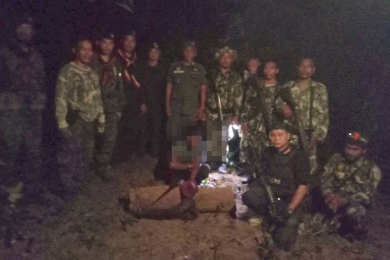 ที่บริเวณป่าทิศใต้วัดเขาศาลาขณะเดินลาดตระเวนจนถึงบริเวณจุดเกิดเหตุพบบุคคลจำนวน 3 คน ลักษณะคล้ายชาวกัมพูชาลักลอบเข้ามาในราชอาณาจักรไทยพร้อมด้วยอุปกรณ์ต้องสงสัยว่าจะเข้ามากระทำผิดกฎหมายเดินหายเข้าไปในป่าเจ้าหน้าทึ่คาดว่าจะใช้เส้นทางบริเวณจุดเกิดเหตุเป็นช่องทางในการลักลอบนำสิ่งของผิดกฎหมายออกมาจึงได้วางกำลังเข้าซุ่มสังเกตุการณ์ ตามเส้นทางที่คาดว่าจะใช้ลำเลียงสิ่งผิดกฎหมายผ่านจน เมื่อเวลา21.06น เจ้าหน้าที่พบเห็นบุคคลชาย 3 คน ใช้เส้นทางบริเวณที่เจ้าหน้าที่วางกำลังซุ่มอยู่เดินใช้ไฟฉายส่องสว่างตามกันมาโดยที่หลังของชายหนึ่งในสามคนดังกล่าวได้แบกไม้พะยูงท่อนมาด้วยจึงได้แสดงตัวเข้าตรวจสอบบุคคลทั้ง3เมื่อพบเห็นเจ้าหน้าที่จึงได้แยกย้ายกันวิ่งหลบหนีเข้าป่าข้างทางเดิน