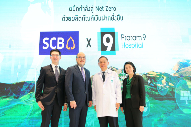 โรงพยาบาลพระรามเก้า และ ธนาคารไทยพาณิชย์ (SCB) ประกาศความร่วมมือครั้งสำคัญ ในการพัฒนาผลิตภัณฑ์ทางการเงินเพื่อสนับสนุนธุรกิจที่มุ่งเน้นการสร้างความยั่งยืน ซึ่งถือเป็นโรงพยาบาลเอกชนแห่งแรกที่เข้าร่วมโครงการ โดยเปิดตัว “เงินฝากเพื่อความยั่งยืน” (Sustainability Deposit) เพื่อตอบโจทย์การดำเนินธุรกิจที่มุ่งเน้นด้านสิ่งแวดล้อม สังคม และธรรมาภิบาล (ESG) สะท้อนถึงความมุ่งมั่นที่จะสนับสนุนแนวทางการพัฒนาอย่างยั่งยืนและการลดผลกระทบด้านสิ่งแวดล้อม โดยเฉพาะการสนับสนุนเป้าหมาย Net Zero ภายในปี 2050