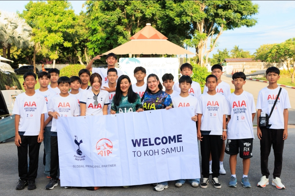 เอไอเอ ประเทศไทย นำโดย นางสาวญดา วงศ์ทองคำ (ที่ 4 จากซ้าย) รองผู้อำนวยการอาวุโส ฝ่ายบริหารสิทธิพิเศษและกิจกรรมลูกค้า ร่วมกับสโมสรฟุตบอลท็อตแน่ม ฮ็อตสเปอร์ จัดกิจกรรม เอไอเอ สเปอร์ส อีลิท ฟุตบอล แคมป์ 2024 นำ 24 เยาวชนที่ได้รับคัดเลือกโดยโค้ชสเปอร์ส จากกิจกรรมเอไอเอ ไทยแลนด์ ฟุตบอล คลินิก 2024 ที่จัดขึ้นเมื่อเดือนตุลาคมที่ผ่านมา เพื่อมาเก็บตัวฝึกฝนทักษะการเป็นนักฟุตบอลแบบมืออาชีพในรูปแบบสเปอร์ส เวย์ ณ มาราลีน่า สปอร์ต รีสอร์ท เกาะสมุย จังหวัดสุราษฏร์ธานี ซึ่งในกิจกรรมครั้งนี้ โค้ชสปอร์สที่ได้รับการเทรนให้เป็น Global Football Development Coach จากสโมสรฟุตบอลท็อตแน่ม ฮ็อตสเปอร์ ได้มาเป็นผู้ฝึกซ้อมหลักให้แก่เยาวชน ซึ่งนำโดย โค้ชชานอน โมโลนี โค้ชลิลลี่ เจอร์วิส และโค้ชจอร์ช ทิวเลย์