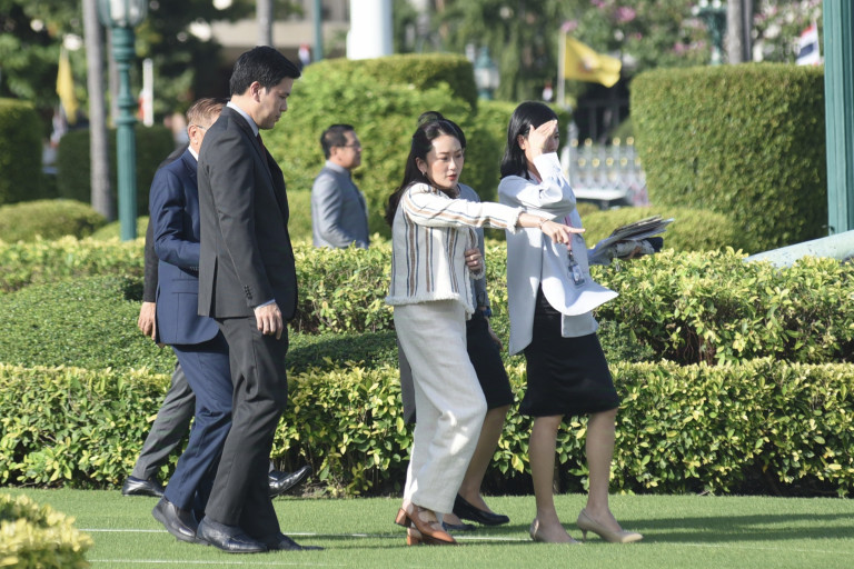 เมื่อวันที่ 26 พ.ย.2567 ที่ทำเนียบรัฐบาล น.ส.แพทองธาร ชินวัตร นายกรัฐมนตรี พร้อมด้วย นายปิฎก สุขสวัสดิ์ คู่สมรส เดินมาที่สนามหญ้าหน้าตึกไทยคู่ฟ้า เพื่อซักซ้อมและดูสถานที่ในจุดที่จะเดินตรวจแถวกองทหารเกียรติยศในพิธีต้อนรับ นายลอว์เรนซ์ หว่อง นายกรัฐมนตรีสิงคโปร์ และภริยา เดินทางเยือนไทยอย่างเป็นทางการในฐานะแขกของรัฐบาล ซึ่งจะมีพิธีตรวจแถวกองทหารเกียรติยศเพื่อต้อนรับในเวลา 10.30 น. วันที่ 28 พ.ย.