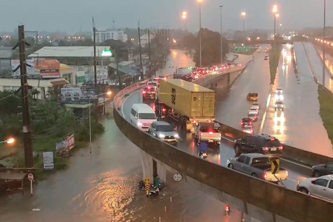 สงขลาฝนตกหนักทั้งวันทั้งคืนส่งผลให้น้ำท่วมถนนกาญจนวนิช เส้นทางหาดใหญ่-สงขลาสายเก่าหลายจุด จนต้องปิดเส้นทาง