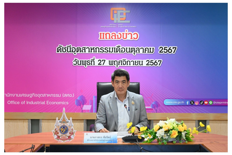 เมื่อวันที่ 27 พ.ย.67 นายภาสกร ชัยรัตน์ ผู้อำนวยการสำนักงานเศรษฐกิจอุตสาหกรรม (สศอ.) เปิดเผยว่า ดัชนีผลผลิตอุตสาหกรรม (MPI) ตุลาคม 2567 อยู่ที่ระดับ 93.41 หดตัวร้อยละ 0.91 เมื่อเทียบกับช่วงเดียวกันของปีก่อน และมีอัตราการใช้กำลังการผลิตอยู่ที่ร้อยละ 57.75 ส่งผลให้ภาพรวม 10 เดือนแรกปี 2567 หดตัวเฉลี่ยร้อยละ 1.63 และอัตราการใช้กำลังการผลิตเฉลี่ยอยู่ที่ร้อยละ 58.72 โดยปัจจัยที่ส่งผลลบต่อภาคการผลิต ได้แก่ ปัญหาขาดกำลังซื้อภายในประเทศ หนี้ครัวเรือน และหนี้ที่ไม่ก่อให้เกิดรายได้ (NPL) อยู่ในระดับสูง ทำให้สถาบันการเงินเข้มงวดในการอนุมัติสินเชื่อ รวมถึงสินค้านำเข้าจากต่างประเทศทะลักเข้าไทย ผู้บริโภคมีแนวโน้มเลือกซื้อสินค้านำเข้ามากขึ้นเนื่องจากราคาถูกกว่า และความไม่แน่นอนจากการเลือกตั้งสหรัฐ อย่างไรก็ตามยังมีปัจจัยบวกจากมาตรการกระตุ้นการใช้จ่ายจากภาครัฐ โดยเฉพาะโครงการเงิน 10,000 บาท เฟสแรก การส่งออกสินค้าอุตสาหกรรมขยายตัว และภาคการท่องเที่ยวขยายตัวต่อเนื่อง ส่งผลให้ภาคบริการและการผลิตรองรับสินค้าอุตสาหกรรมที่เกี่ยวข้องขยายตัวเพิ่มขึ้น