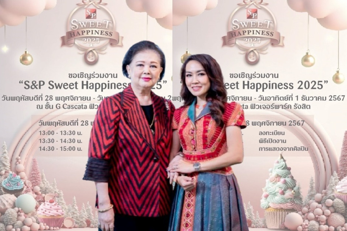 เอส แอนด์ พี เฉลิมฉลองเทศกาลแห่งความสุขส่งท้ายปีสุดยิ่งใหญ่ จัดงาน “S&P Sweet Happiness 2025” พร้อมส่งมอบความสุขให้กับลูกค้าคนพิเศษในช่วงเทศกาลปีใหม่ที่จะมาถึง โดยมี คุณภัทรา ศิลาอ่อน ประธานกรรมการ และ คุณมณีสุดา ศิลาอ่อน ประธานเจ้าหน้าที่สำนักพัฒนาความยั่งยืนและสื่อสารองค์กร บริษัท เอส แอนด์ พี ซินดิเคท จำกัด (มหาชน)