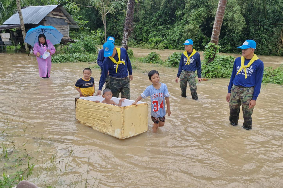 ทัพเรือภาคที่ 3 เร่งช่วยเหลือชาวสตูล หลังน้ำป่าท่วมบ้านเรือน คลองควนโดนเอ่อล้น ถนนถูกน้ำตัดขาด