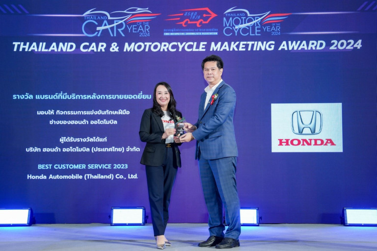 บริษัท ฮอนด้า ออโตโมบิล (ประเทศไทย) จำกัด คว้ารางวัล‘แบรนด์ที่มีบริการหลังการขายยอดเยี่ยม (BEST CUSTOMER SERVICE 2023)’ จากกิจกรรมการแข่งขันทักษะพนักงานฮอนด้าประจำปี 2566 (Honda Skill Contest 2023) ในงานมอบรางวัลรถยนต์ยอดเยี่ยมประจำปี 2567 (Thailand Car of the Year 2024) ที่จัดโดยสมาคมผู้สื่อข่าวรถยนต์และรถจักรยานยนต์ไทย (สรยท.) ตอกย้ำว่าฮอนด้าไม่เพียงแค่เป็นแบรนด์รถยนต์ที่มุ่งมั่นในการนำเสนอยนตรกรรมคุณภาพที่ตอบโจทย์ไลฟ์สไตล์อันหลากหลายของลูกค้า แต่ยังให้ความสำคัญด้านการบริการหลังการขายที่ครบวงจรผ่านเครือข่ายศูนย์บริการ 219 แห่งที่ครอบคลุมทั่วประเทศควบคู่กันไปด้วย เพื่อส่งมอบการดูแลและการบริการที่มีคุณภาพผ่านผู้เชี่ยวชาญในทุกด้าน ให้ลูกค้าอุ่นใจและมีประสบการณ์ที่ดีตลอดอายุการใช้งานรถยนต์