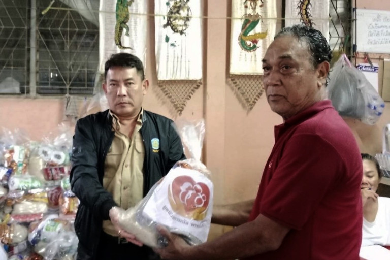 จากนั้น ได้ลงพื้นที่ไปมอบถุงยังชีพให้กับผู้ประสบภัยน้ำท่วม บริเวณชุมชนบ้านบ่อทรัพย์ ตำบลโพธิ์เสด็จ อำเภอเมืองนครศรีธรรมราช