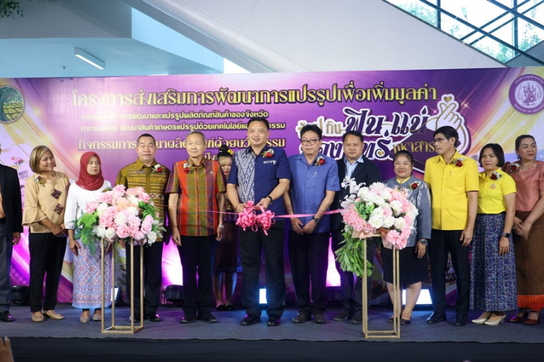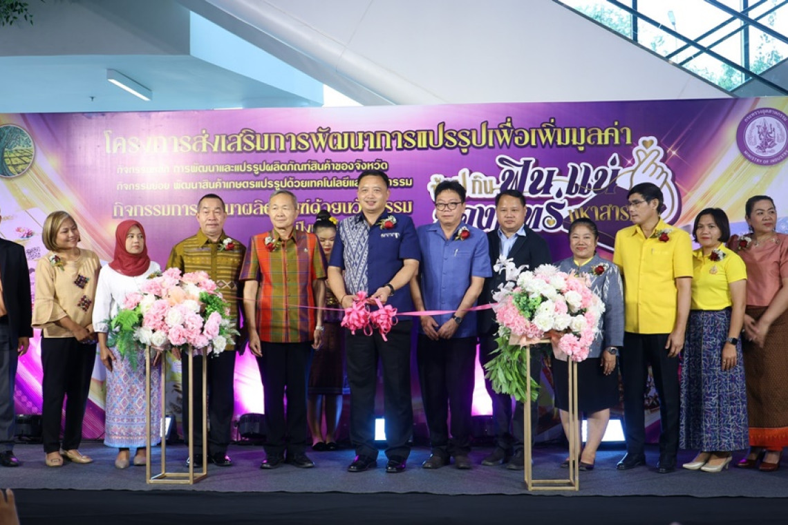 เมื่อวันที่ 28 พ.ย.67 นายกนก ศรีวิชัยนันท์ รองผู้ว่าราชการจังหวัดมหาสารคาม เป็นประธานเปิดงานแสดงนิทรรศการและจำหน่ายสินค้าภายใต้โครงการส่งเสริมการพัฒนาการแปรรูปเพื่อเพิ่มมูลค่า กิจกรรมหลักการพัฒนาและแปรรูปผลิตภัณฑ์สินค้าของจังหวัด กิจกรรมย่อยการพัฒนาสินค้าเกษตรแปรรูปด้วยเทคโนโลยีและนวัตกรรม ที่สำนักงานอุตสาหกรรมจังหวัดมหาสารคามจัดขึ้น ณ ลานแสดงสินค้า โซนเดอะการ์เด้น ห้างเสริมไทยคอมเพล็กซ์ตำบลตลาด อำเภอเมือง จังหวัดมหาสารคาม