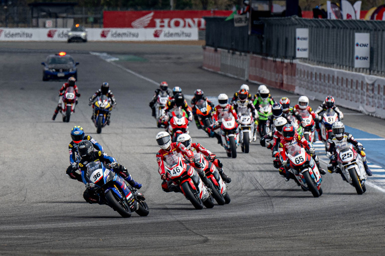 ต่อด้วยการลุ้นแชมป์ในรุ่นเล็กอย่าง เอเชีย โปรดักชั่น 250 ซีซี ยังต้องมาตัดสินที่ประเทศไทยเช่นกัน โดย “เฮอร์จุน แอทน่า เฟอร์ดาอุส” ดาวรุ่งชาวอินโดนีเซียจาก แอสตร้า ฮอนด้า เรซซิ่ง ทีม รั้งจ่าฝูงเหนือทีมเมทอย่าง “มูฮัมหมัด เคียนดร้า รามาดิป้า” 10 คะแนน ส่วนอันดับ 3 ได้แก่ “มูฮัมหมัด แฟโรซี” จาก ยามาฮ่า เรซซิ่ง อินโดนีเซีย ตามหลัง 12 คะแนน ขณะที่นักบิดไทยอย่าง “วริทธ์ ทองนพคุณ” และ “ปิยวัฒน์ ประทุมยศ” จาก อีสต์ เอ็นเจที เรซซิ่ง ทีม รั้งอันดับ 8 และ 9 มีคนละ 64 คะแนน และ 43 คะแนนตามลำดับ