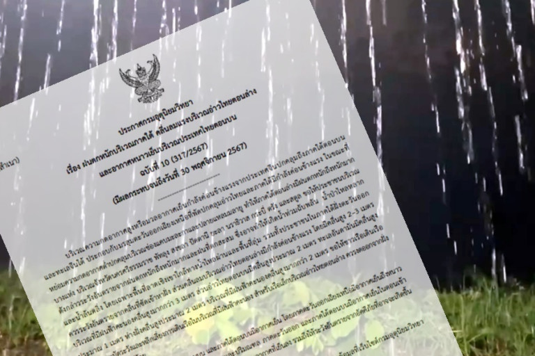 วันที่ 30 พ.ย.67 กรมอุตุนิยมวิทยา ประกาศฉบับที่ 10 เรื่อง ฝนตกหนักบริเวณภาคใต้ คลื่นลมแรงบริเวณอ่าวไทยตอนล่าง และอากาศหนาวเย็นบริเวณประเทศไทยตอนบน (มีผลกระทบจนถึงวันที่ 30 พฤศจิกายน 2567) ความว่า...