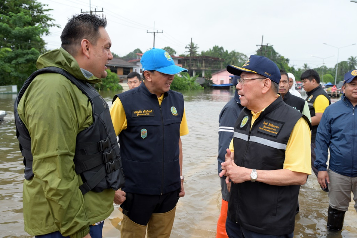วันที่ 30 พ.ย.67 นายอิทธิ ศิริลัทธยากร รัฐมนตรีช่วยว่าการกระทรวงเกษตรและสหกรณ์ พร้อมด้วย นายเฉลิมชัย ตรีนรินทร์ ผู้อำนวยการสำนักงานชลประทานที่ 17 และผู้เกี่ยวข้อง ลงพื้นที่ติดตามสถานการณ์น้ำ บริเวณ หมู่ที่ 3 บ้านปะลุกา ตำบลโฆษิต อำเภอตากใบ จังหวัดนราธิวาส พร้อมตรวจเยี่ยมให้กำลังใจและให้ความช่วยเหลือผู้ประสบอุทกภัย และมอบถุงยังชีพจำนวน 300 ถุงให้กับประชาชนที่ได้ผลกระทบจากสถานการณ์น้ำท่วม