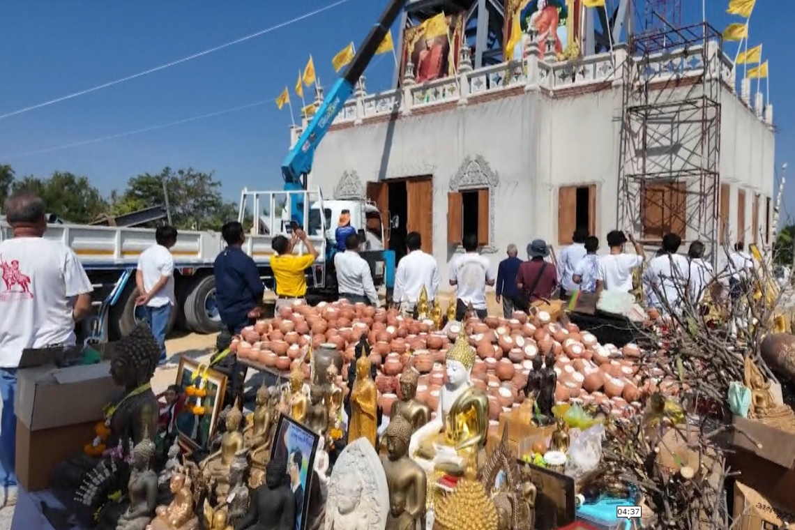 สุพรรณบุรีแห่ส่องเลขก้านธูปเลขทะเบียนรถเครนยกหัวใจพระเจ้าใหญ่
