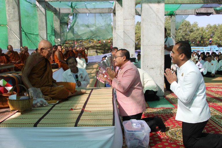 หลังเสร็จพิธีร่วมรับวัตถุมงคล เหรียญ สังฆสามัคคี รุ่น เสริมบารมีพลังเหนือดวง จากจากหลวงปู่ทองอินทร์ กตปุญโญ วัดประชาคมวนาราม(ป่ากุง) และรับน้ำพระพุทธมนต์ จากพระวชิรญาณวิศิษฏ์ (พระอาจารย์สุริยันต์ โฆสปญฺ.โญ) วัดป่าวังน้ำเย็น จังหวัดมหาสารคาม  พุทธศาสนิกชนที่มีความประสงค์จะร่วมบริจาคเพื่อสมทบทุนโครงการก่อสร้างอาคารประชุมสัมมนาสังฆสามัคคี สามารถร่วมบริจาคได้  ธนาคารกรุงไทย เลขบัญชี 663-7-11785-4 ธนาคารกรุงไทย สาขาศาลากลางจังหวัดร้อยเอ็ด