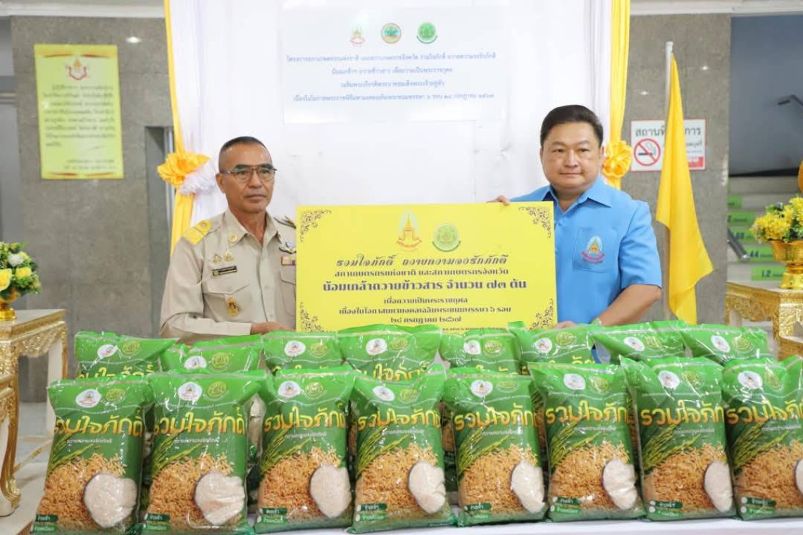 อ่างทอง รับมอบข้าวสารในโครงการเฉลิมพระเกียรติ รวมใจภักดิ์ ถวายความจงรักภักดี จากสภาเกษตรกรจังหวัด