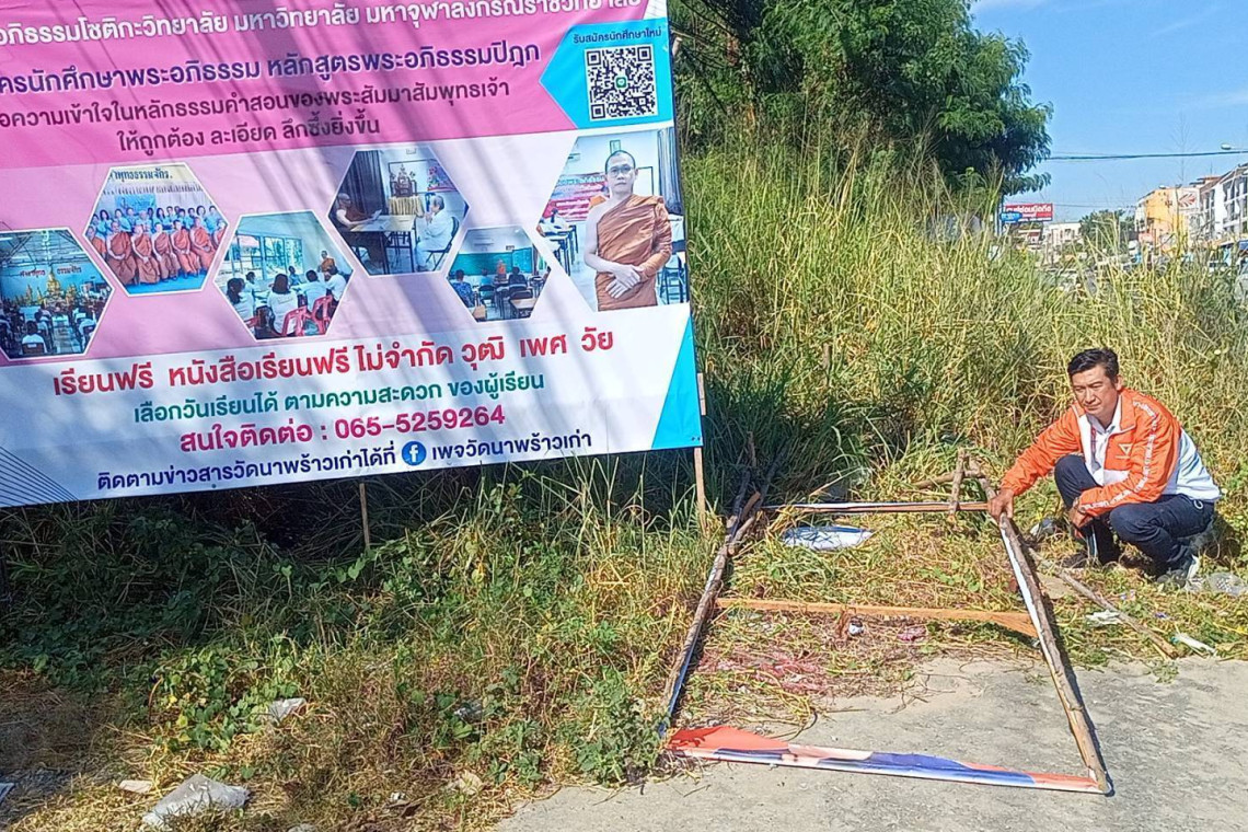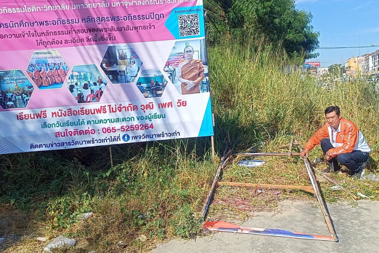 ว่าที่ผู้สมัคร สจ.เขต 3 อำเภอศรีราชาพรรคประชาชนโอดป้ายแนะนำตัวถูกมือดีทำลายเสียหายยันเอาผิดกับคนทำลายป้ายหาเสียงไม่ให้เป็นเยี่ยงอย่าง โทษจำคุกไม่เกิน 3 ปี หรือปรับไม่เกิน 60,000 บาท หรือทั้งจำทั้งปรับ