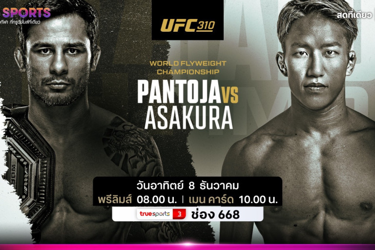 โปรแกรมถ่ายทอดสด ยูเอฟซี 310 อเล็กซานเดร ปันโตจา - ไค อซากุระ ทรูวิชั่นส์ และแอปพลิเคชันทรูวิชั่นส์ นาว ถ่ายทอดสด ทางช่อง True Sports 3 (668)