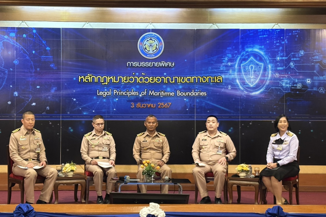 กรมยุทธศึกษาทหารเรือ เปิดเวทีเสวนาวิชาการ เรื่อง”หลักกฎหมายว่าด้วยอาณาเขตทางทะเล “เพื่อชี้ให้เห็นถึงบทบาทของกองทัพเรือ ความท้าทายที่กองทัพเรือต้องเผชิญ ตามแนวคิดของ พล.ร.อ.จิรพล ว่องวิทย์ ผบ.ทร. โดยมี น.อ.เกียรติยุทธ เทียนสุวรรณ รองผู้อำนวยการสำนักนโยบายและแผน กรมยุทธการทหารเรือ น.อ.หญิงมธุศร เลิศพานิช รองผู้อำนวยการกองกฤษฎีกา สำนักงานพระธรรมนูญทหารเรือ น.อ.รชต โอศิริ ผู้อำนวยการโรงเรียนอุทกศาสตร์ กรมอุทกศาสตร์ และน.อ.สมาน ได้รายรัมย์ อาจารย์ฝ่ายศึกษา โรงเรียนนายเรือ เป็นวิทยากร