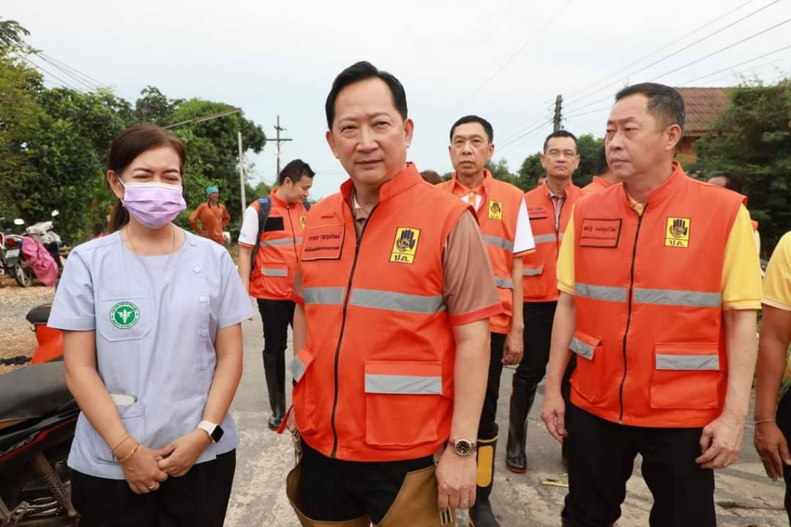 จากนั้นเวลา 16.00 น. คณะได้เดินทางไปยังอำเภอระโนด พื้นที่หมู่ 2 บ้านเสาธง ตำบลบ้านขาว ลงเรือลุยน้ำเยี่ยมให้กำลังใจชาวบ้านผู้ประสบภัย พร้อมมอบถุงยังชีพและน้ำดื่มให้แก่ผู้ประสบภัย ซึ่งพื้นที่บ้านเสาธงระดับน้ำยังคงท่วมสูงในบางจุด ชาวบ้านต้องใช้เรือในการเดินทางเข้าออกพื้นที่ ในโอกาสนี้ อธิบดี ปภ. ได้ยืนยันให้ความมั่นใจกับผู้ประสบภัยว่ารัฐบาลจะให้การดูแลอย่างทั่วถึง โดย ปภ. จะนำส่งเสบียง อาหาร น้ำดื่ม และประสานการดูแลด้านความเป็นอยู่และด้านสาธารณสุขแก่ประชาชนอย่างต่อเนื่องจนกว่าสถานการณ์จะคลี่คลาย และจะได้เร่งประสานให้จังหวัดและองค์กรปกครองส่วนท้องถิ่นสำรวจข้อมูลผู้ประสบภัยและความเสียหาย เพื่อเร่งจ่ายเงินเยียวยาน้ำท่วม 9,000 บาท ตามมติ ครม. ให้ถึงมือประชาชนโดยเร็วที่สุด