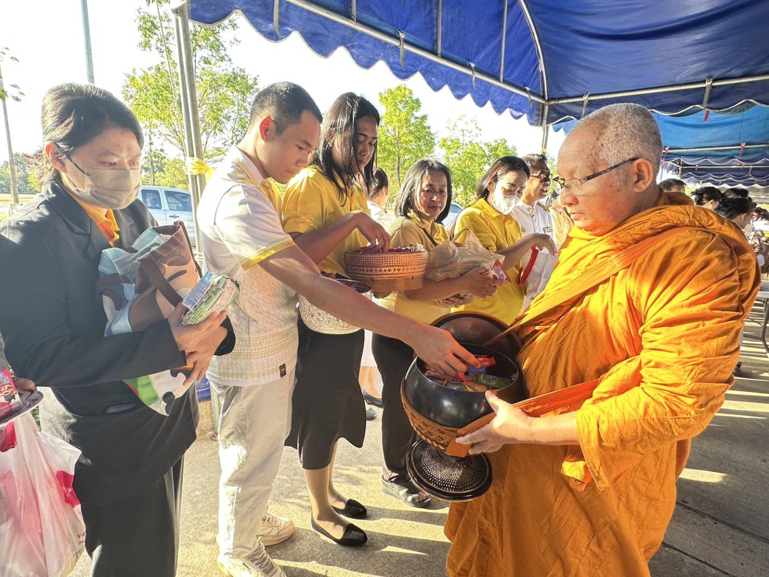 มีนายธนภัทร ณ ระนอง รอง ผวจ.กาฬสินธุ์ นายนพดล จอมเพชร รอง ผวจ.กาฬสินธุ์ นายรุจติศักดิ์ รังษี รอง ผวจ.กาฬสินธุ์ พร้อมด้วยผู้พิพากษาหัวหน้าศาล จ.กาฬสินธุ์ หัวหน้าส่วนราชการ พ่อค้า นักเรียน นักศึกษา ประชาชนทุกหมู่เหล่า ร่วมพิธีและนำจตุปัจจัยไทยธรรม ข้าวสาร อาหารแห้ง ทำบุญตักบาตร เพื่อรวบรวมไปช่วยเหลือพี่น้องประชาชน ผู้ประสบสาธารณภัย ฐานะยากจนและครัวเรือนเปราะบาง ตามโครงการกาฬสินธุ์ไม่ทิ้งใครไว้ข้างหลังต่อไป