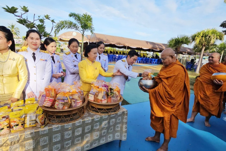 วันที่ 5 ธ.ค.67 ที่บริเวณสวนสุขภาพเทศบาลเมืองศรีราชา นางสาวนริศรา ทิพยางกรู ปลัดอาวุโสอำเภอศรีราชา รักษาราชการนายอำเภอศรีราชา เป็นประธานจุดธูปเทียนเครื่องทองน้อยหน้าพระบรมฉายาลักษณ์ พระบาทสมเด็จพระบรมชนกาธิเบศรมหาภูมิพลอดุลยเดชมหาราชบรมนาถบพิตร พร้อมด้วย นายฉัตรชัย ทิมกระจ่าง นายกเทศมนตรีเมืองศรีราชา คณะผู้บริหาร ภาครัฐ ผู้นำองค์กรท้องถิ่นและเอกชน ทหาร ตำรวจ องค์กรปกครองท้องถิ่น และประชาชนชาวศรีราชา ร่วมพิธีเจริญพระพุทธมนต์และทำบุญตักบาตรข้าวสารอาหารแห้งแด่พระสงฆ์จำนวน 59 รูป เพื่อถวายเป็นพระราชกุศลแด่ พระบาทสมเด็จพระบรมชนกาธิเบศรมหาภูมิพลอดุลยเดชมหาราชบรมนาถบพิตร ในโอกาสวันคล้ายวันเฉลิมพระชนมพรรษา 5 ธันวาคม วัมชาติและวันพ่อแห่งชาติ