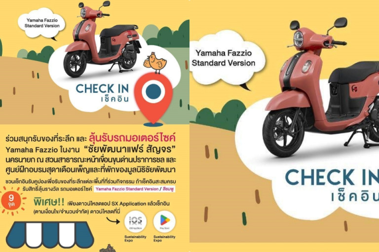 ร่วมลุ้น เช็คอิน (CHECK IN) 9 จุดบริเวณงานชัยพัฒนาแฟร์ สัญจร นครนายก พร้อมชิงรางวัลของที่ระลึกมากมาย “เพียงเช็คอินรับคูปองเพื่อลุ้นรับของที่ระลึกแต่ละพื้นที่ที่ร่วมกิจกรรม เมื่อเช็คอินสะสมครบ 9 จุด รับสิทธิ์ลุ้นรางวัล รถมอเตอร์ไซต์ Yamaha Fazzio Standard Version ได้เลย!!.....