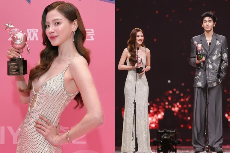 โดย ใบเฟิร์น ในลุคเซ็กซี่สวมเดรสแหวกอกระยิบระยับสวยสะกด ยืนคู่กับ จางหลิงเฮ่อ  จนในโลกโซเชียลต่างยกให้เป็นเฟรมทองคำ