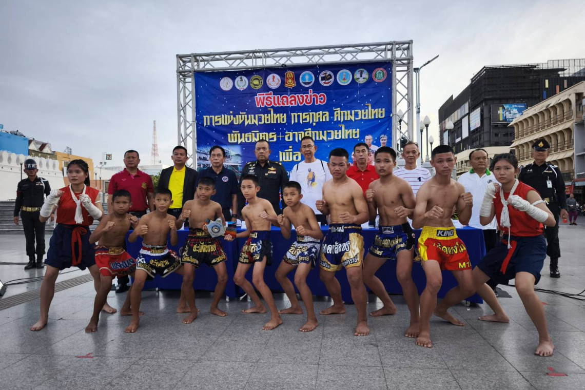 วันที่ 8 ธันวาคม 2567 เวลา 17.00 น.ผู้สื่อข่าวรายงาน ว่า ที่ลานอนุสาวรีย์ท้าวสุรนารี (ย่าโม) นครราชสีมา นายชัยวัฒน์ ชื่นโกสุม ผวจ.นครราชสีมา พร้อม พลตรีอรรถชัย รักษาศิลป์ ผู้บัญชาการมณฑลทหารบกที่ 21 นายอุทัย มิ่งขวัญ นายกสมาคมกีฬามวยไทยและมวยสากลประเทศไทย นายอำนาจ บุตรโต ผู้อำนวยการโรงเรียนกีฬาเทศบาลนคร (ทน.) นครราชสีมา และโปรโมเตอร์มวยไทยชื่อดัง นายสมหมาย สกุลเมตตา และนายอาจศึก งามสมภพ แถลงการจัดแข่งขันมวยไทย การกุศล “ศึกมวยไทย พันธมิตร-อาจศึกมวยไทยการกุศล”