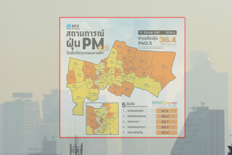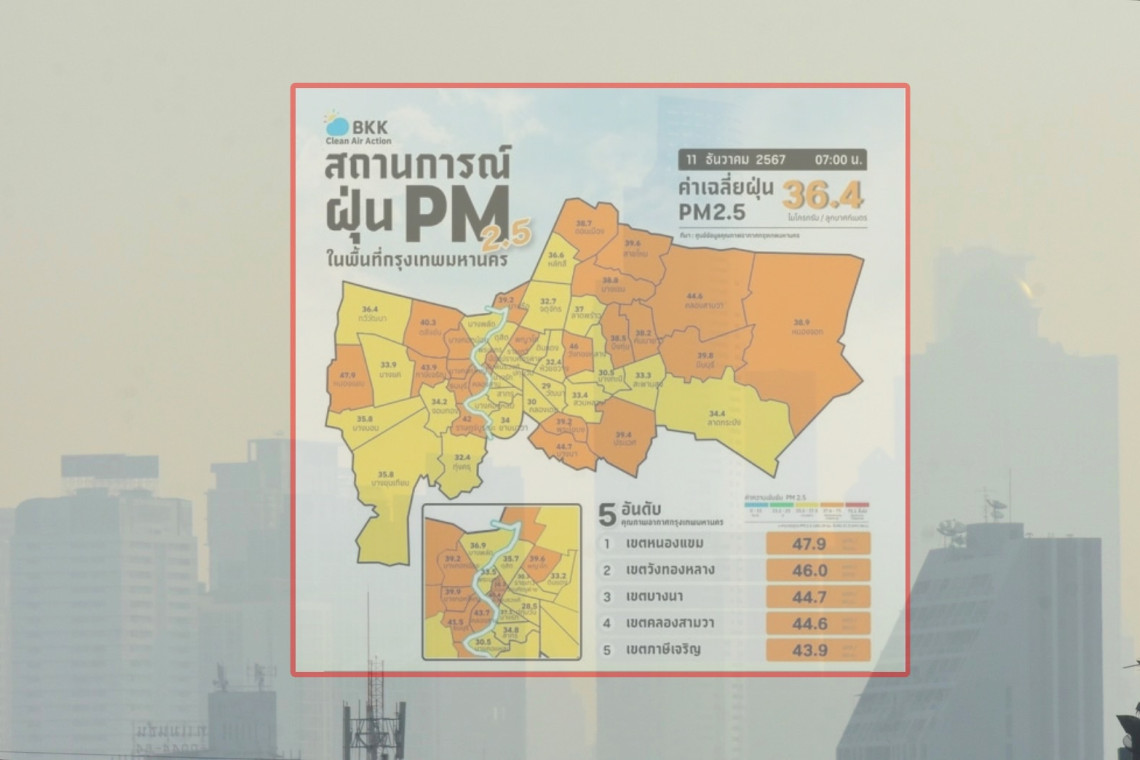 ค่าเฉลี่ยของกรุงเทพมหานคร 36.4 มคก./ลบ.ม.