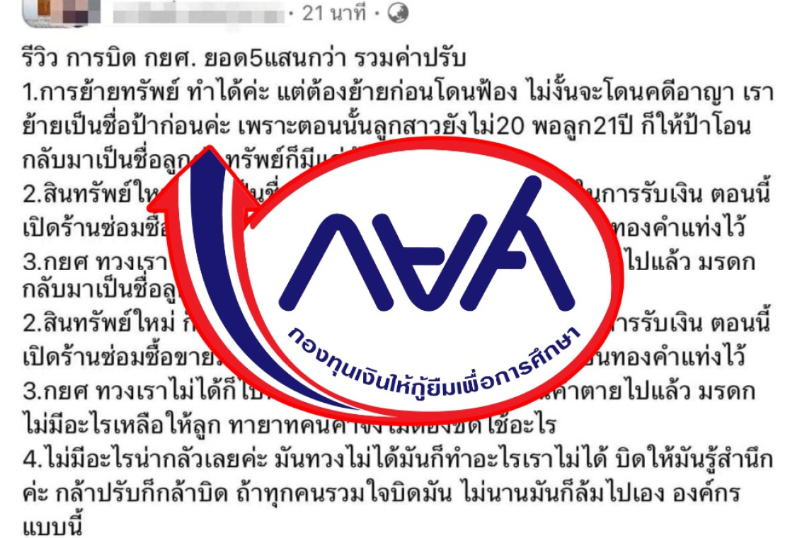 3. กยศ. ทวงเราไม่ได้ก็ไปทวงกับคนค้ำแทน โชคดีที่คนค้ำตายไปแล้ว มรดกไม่มีอะไรเหลือให้ลูก ทายาทคนค้ำจึงไม่ต้องชดใช้อะไร